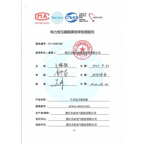 SCB14-100/10-NX2干式電力變壓器 檢測(cè)報(bào)告