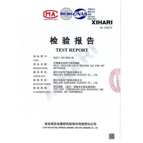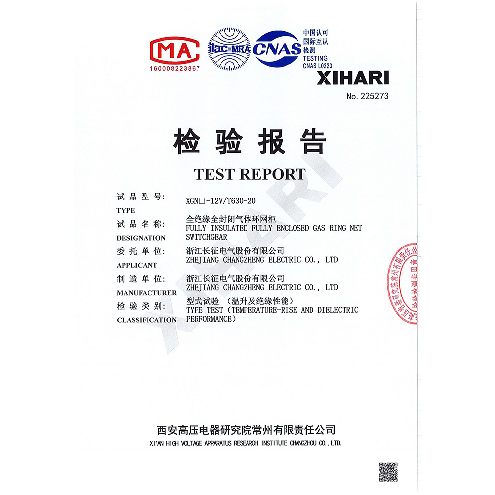 XGN□-12V/T630-20全絕緣全封閉氣體環(huán)網(wǎng)柜 檢驗(yàn)報(bào)告