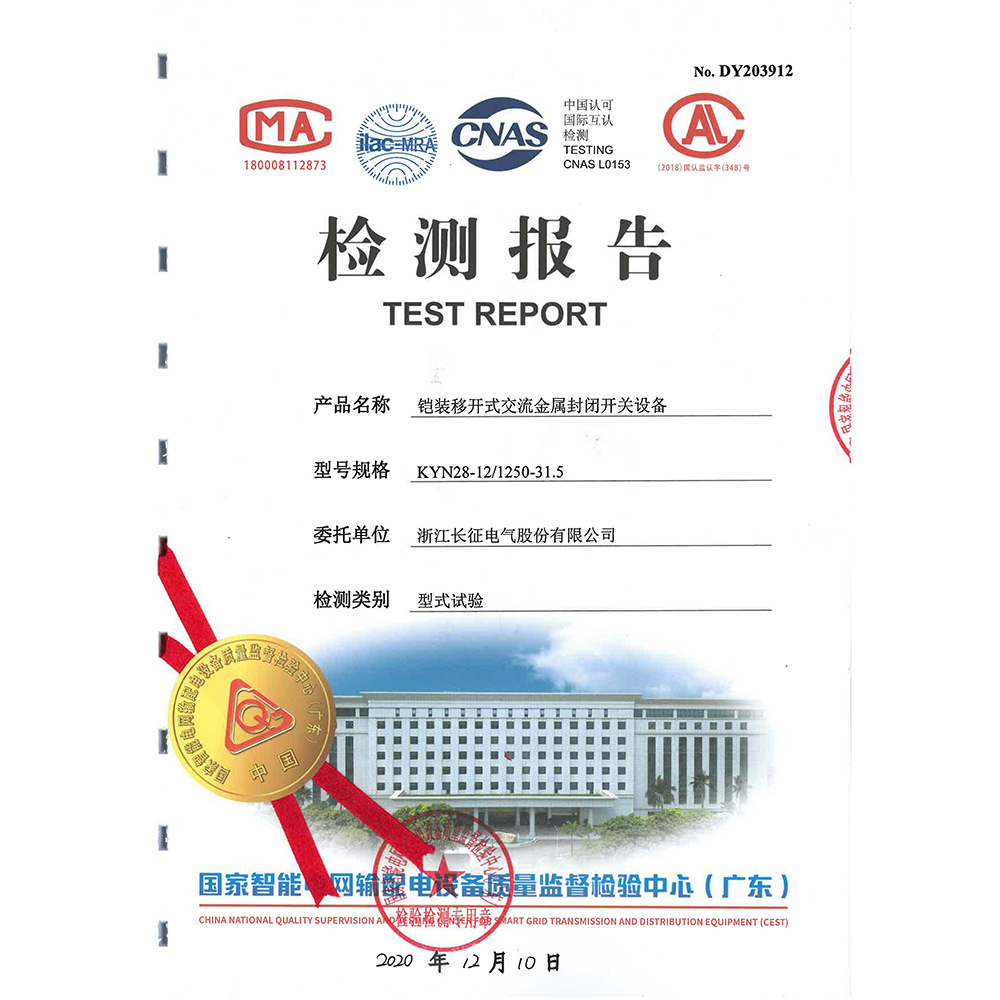 KYN28-12/1250-31.5鎧裝移開式交流金屬封閉開關(guān)設(shè)備 檢測(cè)報(bào)告