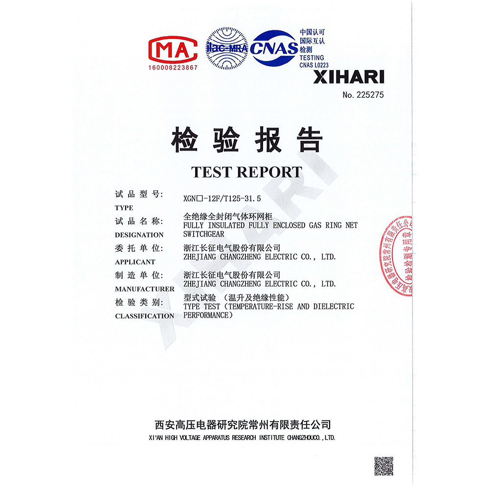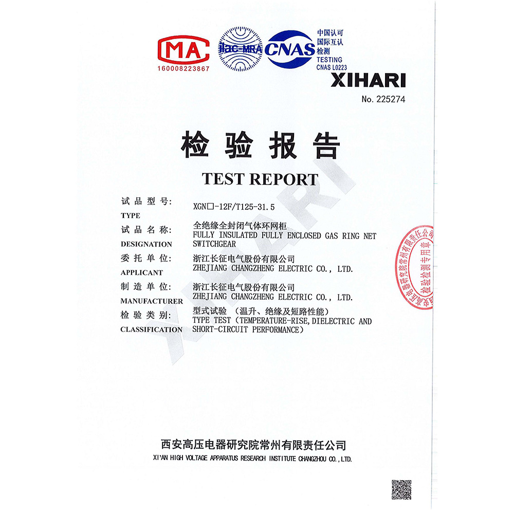 XGN□-12F/T125-31.5全絕緣全封閉氣體環(huán)網(wǎng)柜 檢驗(yàn)報(bào)告